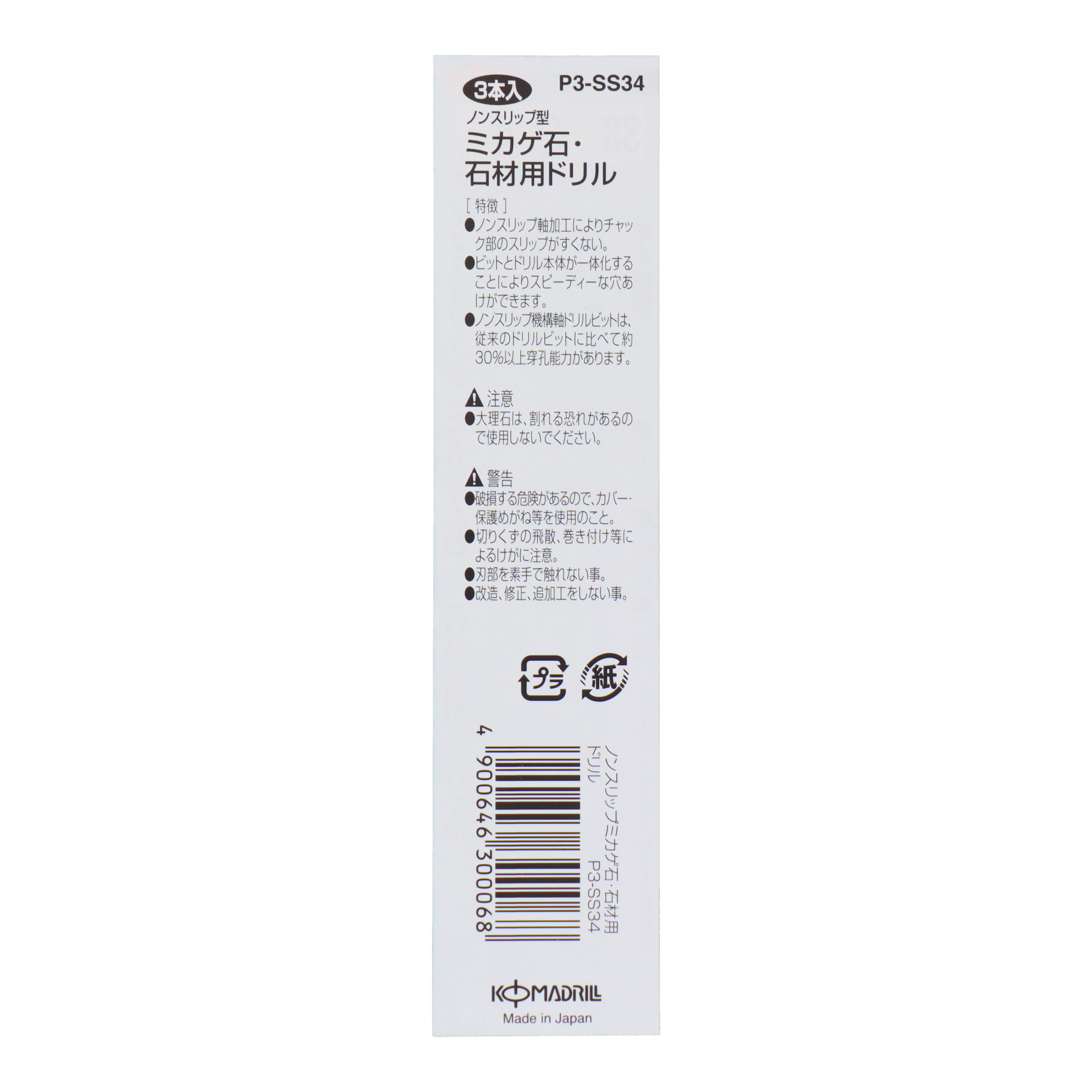 H&H ノンスリップ型ミカゲ石・石材用ドリル 3本組 3.4mm P3-SS34