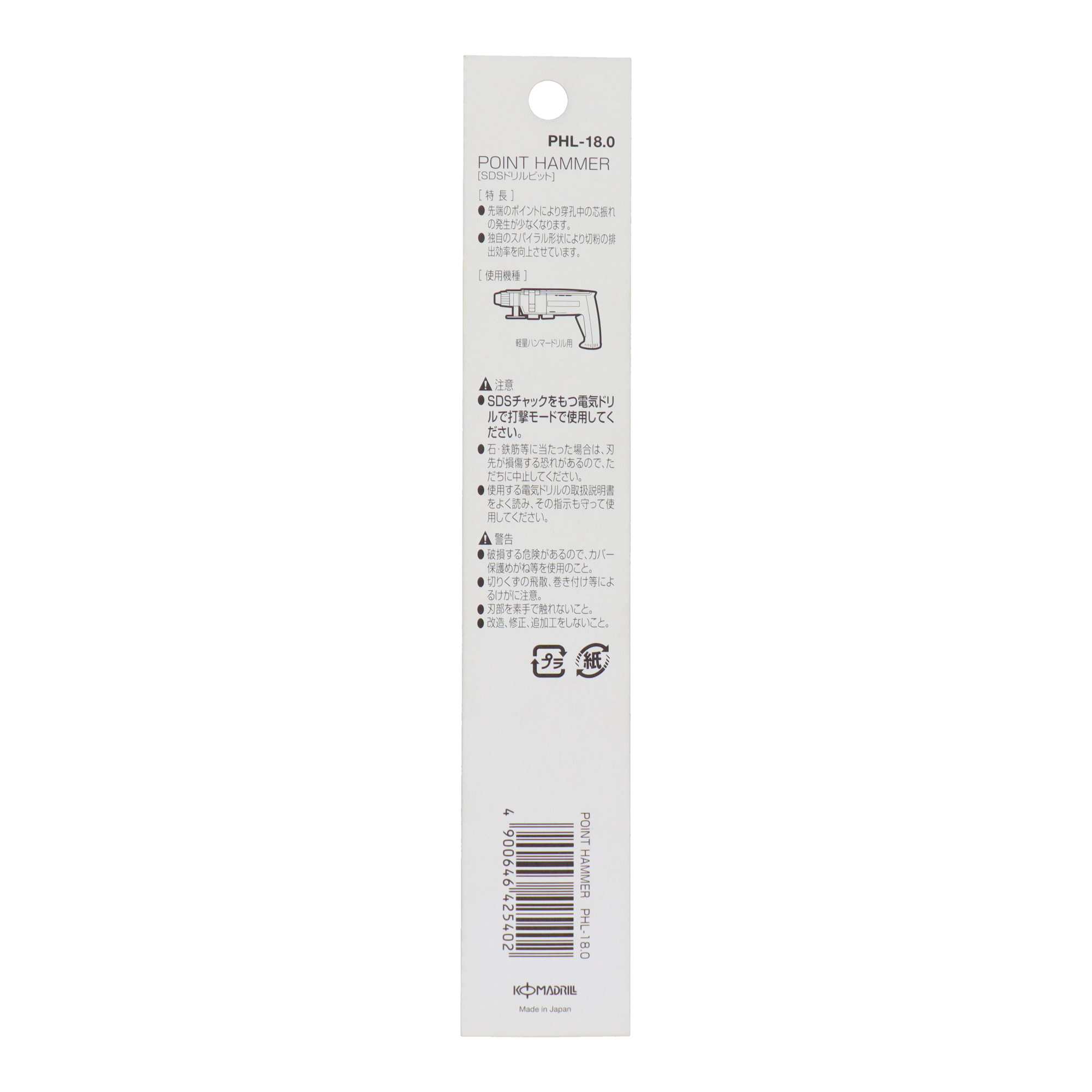 ※SDSチャックをもつ電動ドリルで打撃モードで使用してください。