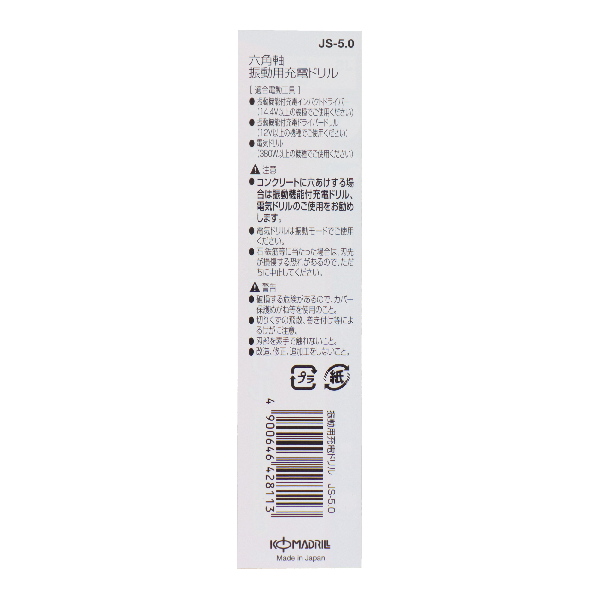 ●電気ドリル(380W以上)振動モードでご使用ください。