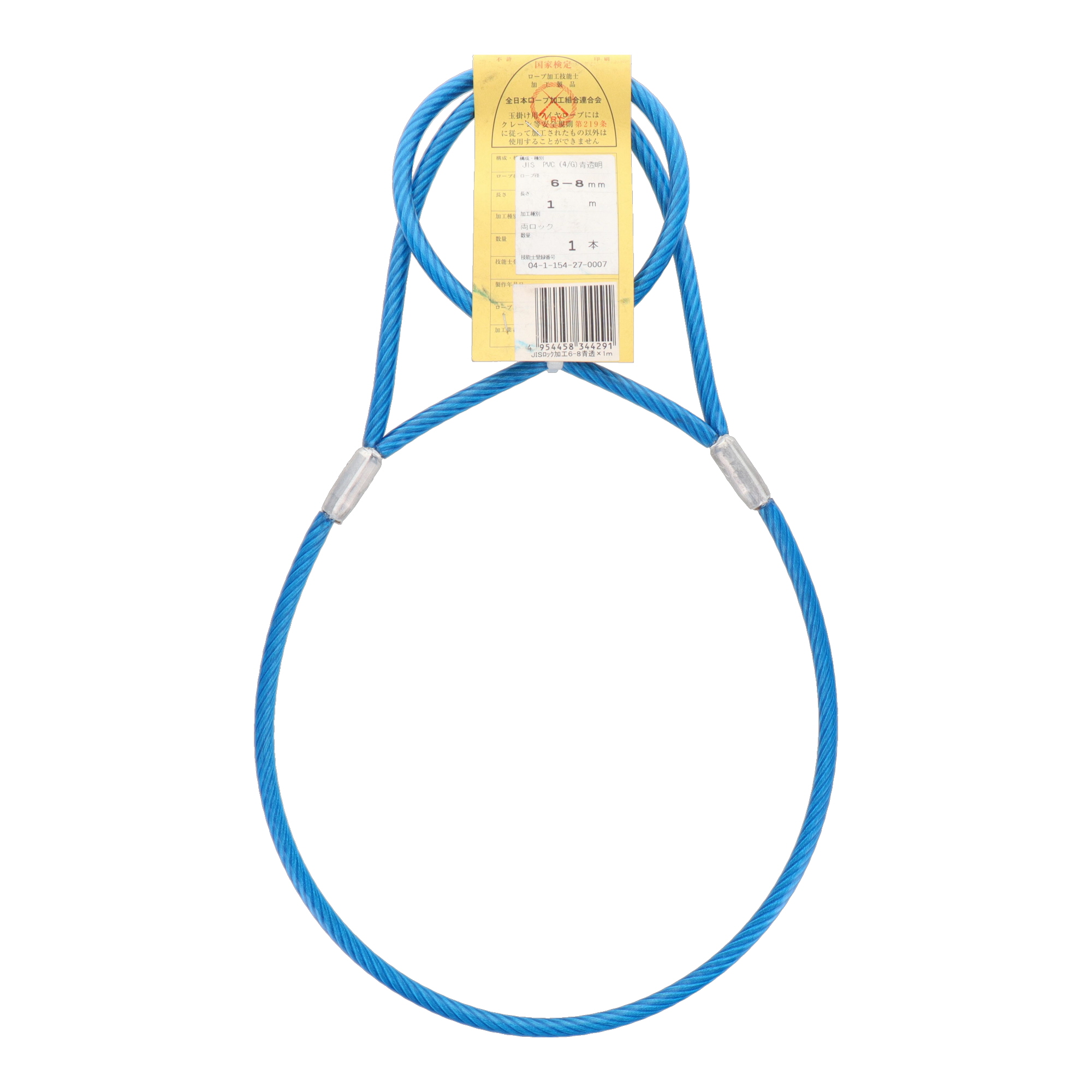 大和工業 JIS被覆玉掛ワイヤ クランプ止両アイ 青透明 6-8×1m