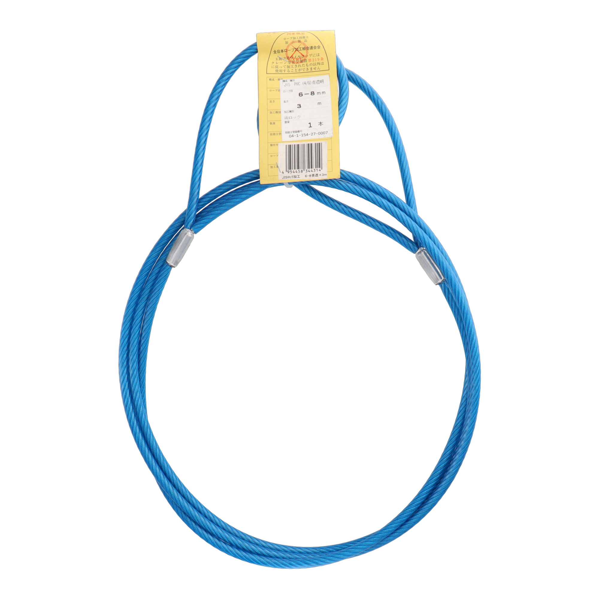 大和工業 JIS被覆玉掛ワイヤ クランプ止両アイ 青透明 6-8×3m