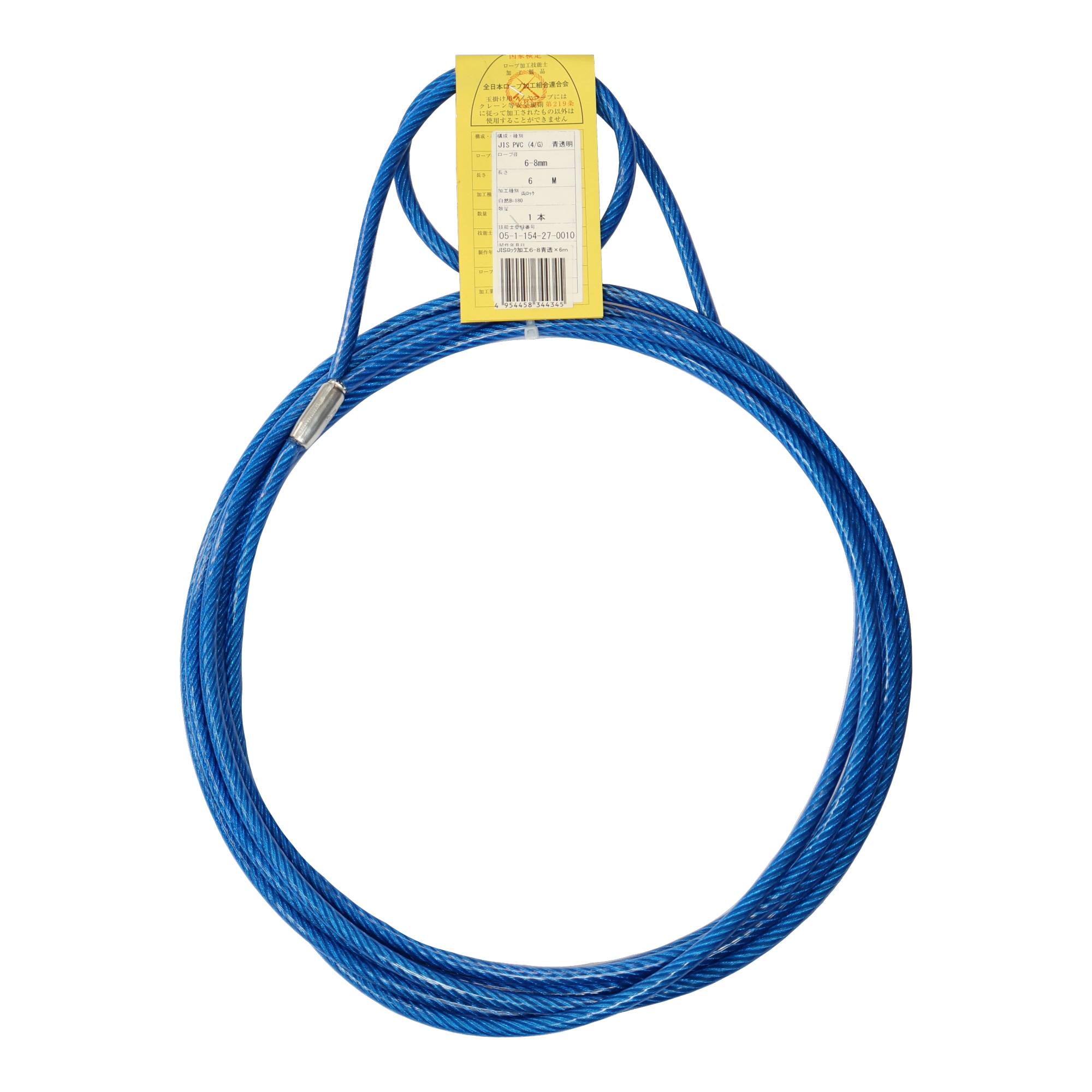 大和工業 JIS被覆玉掛ワイヤ クランプ止両アイ 青透明 6-8×5m