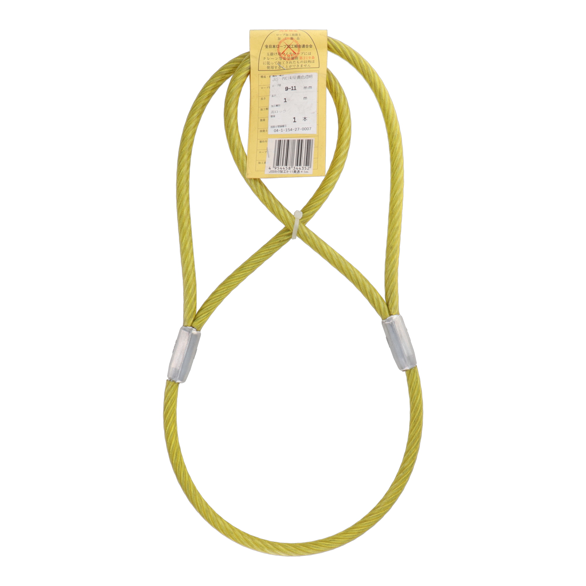 大和工業 JIS被覆玉掛ワイヤ クランプ止両アイ 黄透明 9-11×1m