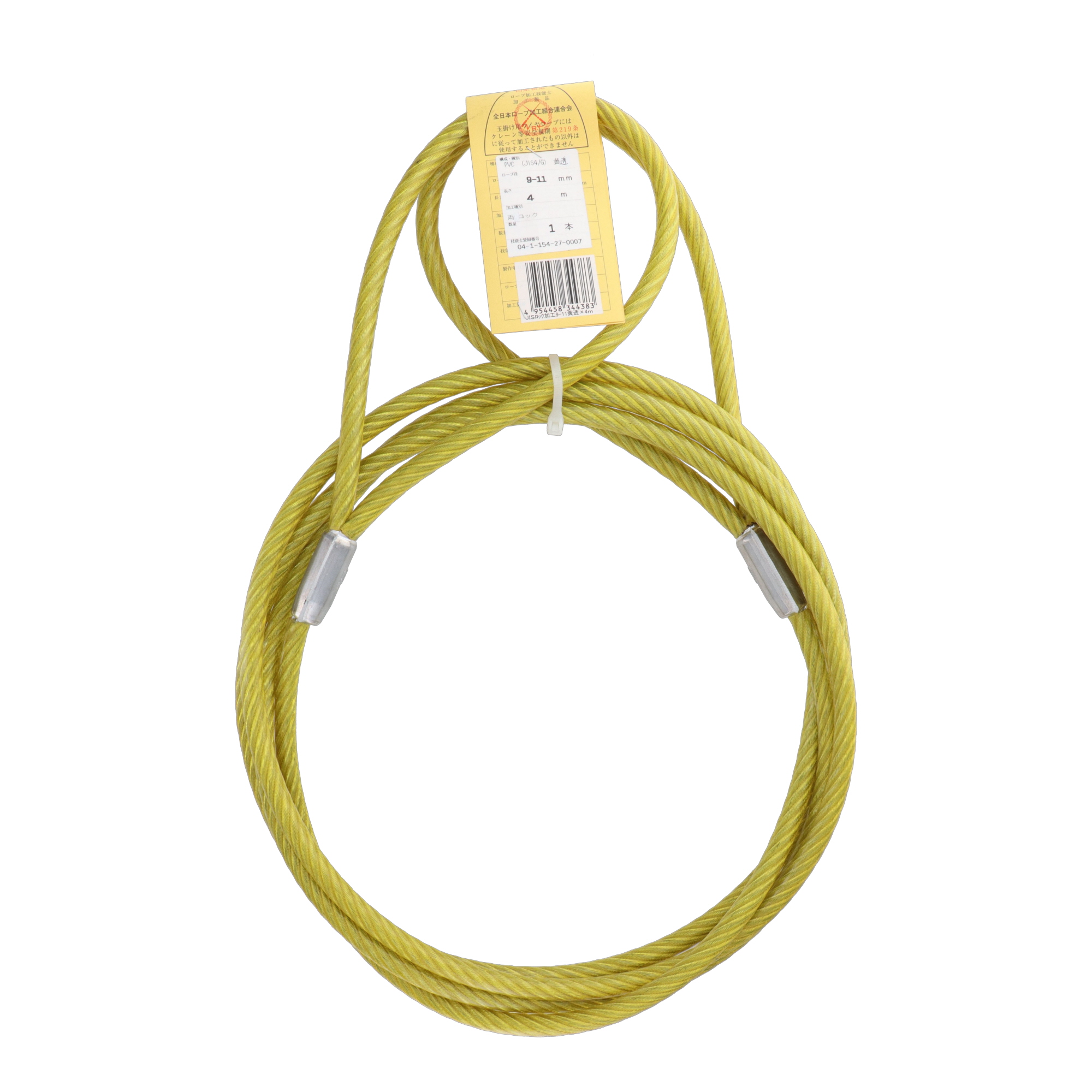 大和工業 JIS被覆玉掛ワイヤ クランプ止両アイ 黄透明 9-11×4m