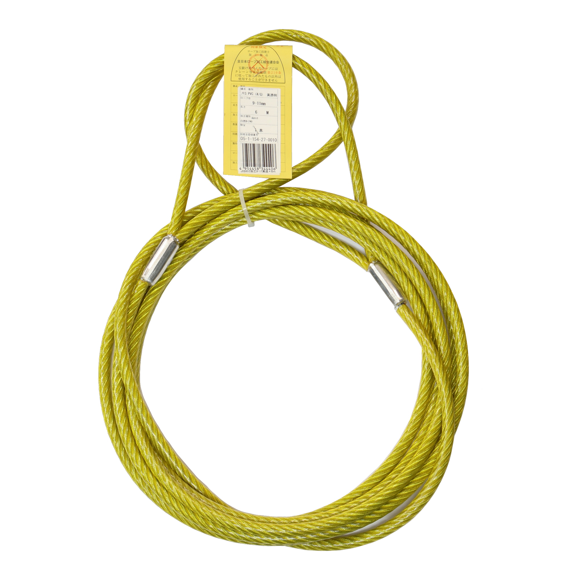 大和工業 JIS被覆玉掛ワイヤ クランプ止両アイ 黄透明 9-11×4m
