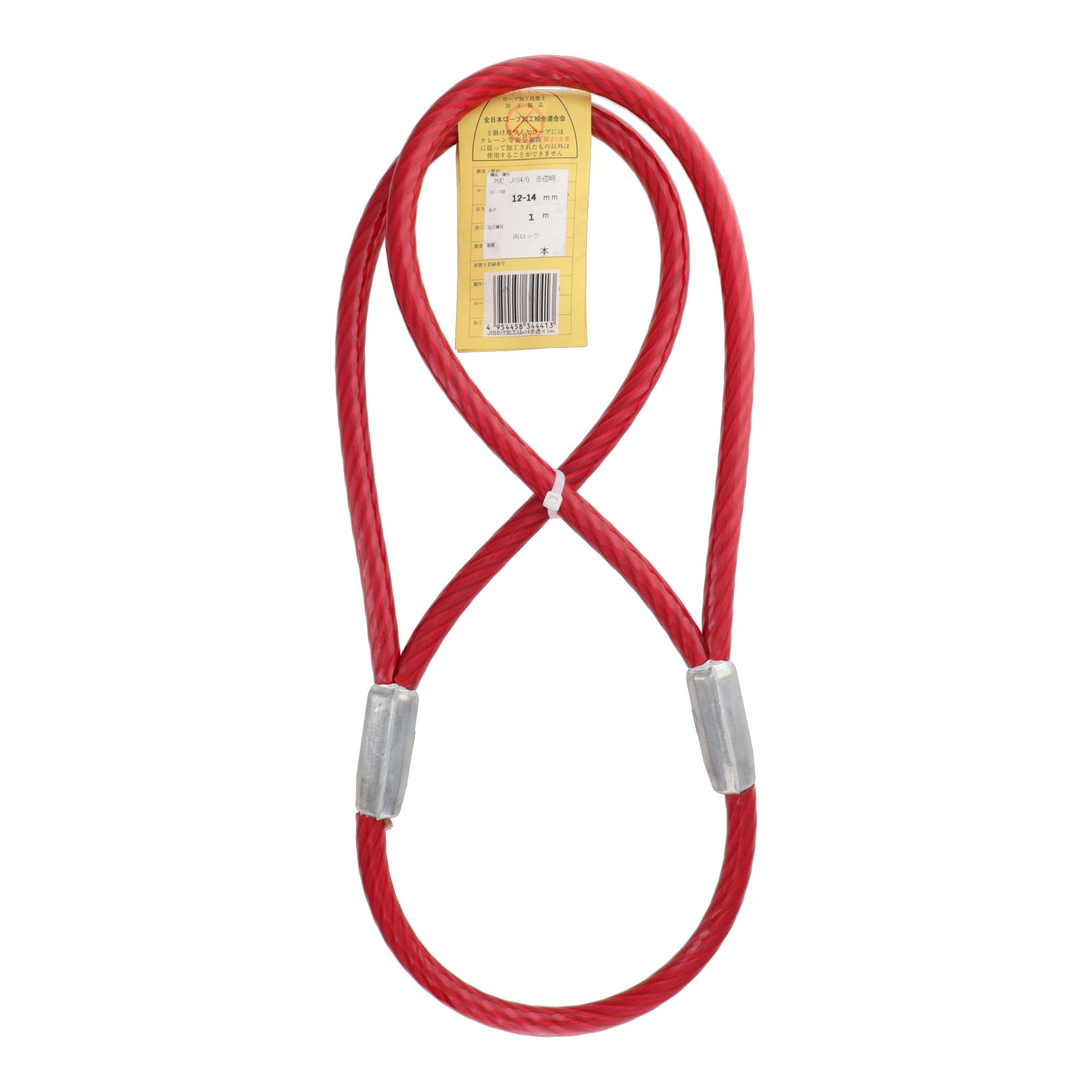 大和工業 JIS被覆玉掛ワイヤ クランプ止両アイ 赤透明 12-14×1m