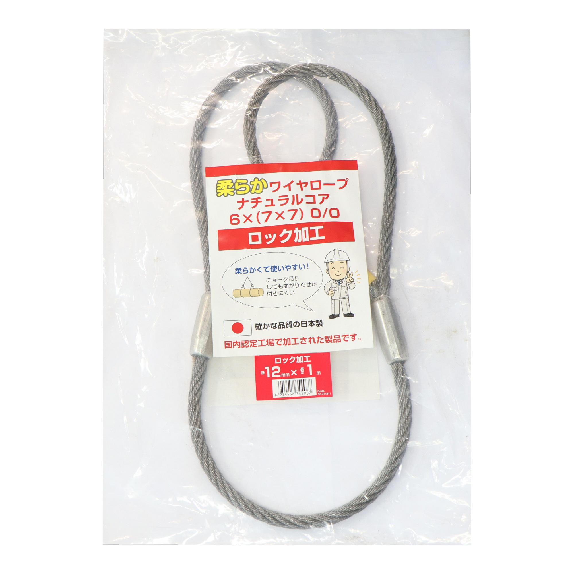柔らかワイヤロープ ナチュラルコア ロック加工 12mm×1m