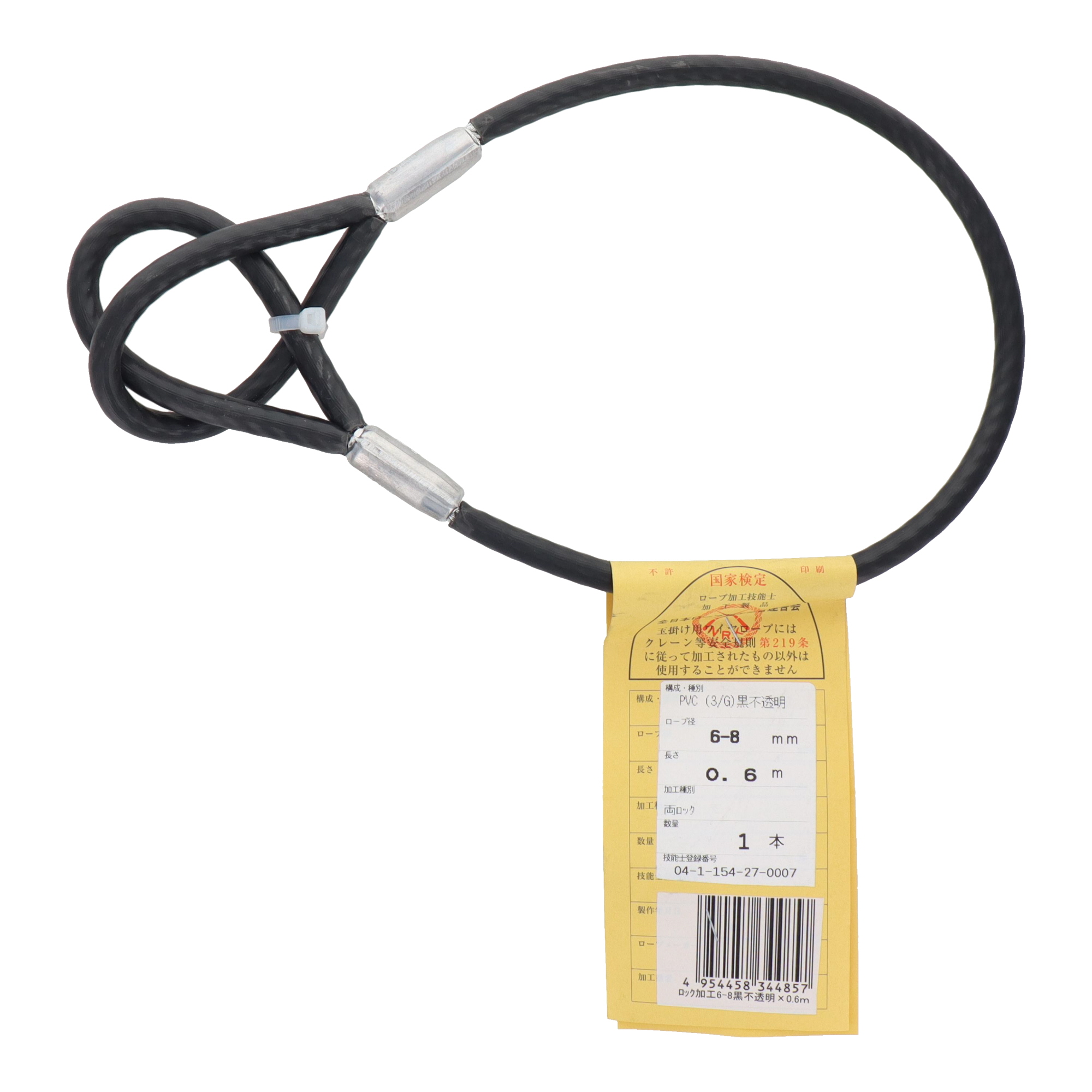 大和工業 PVC被覆ワイヤ 両ロック加工 黒不透明 6-8mm×0.6m