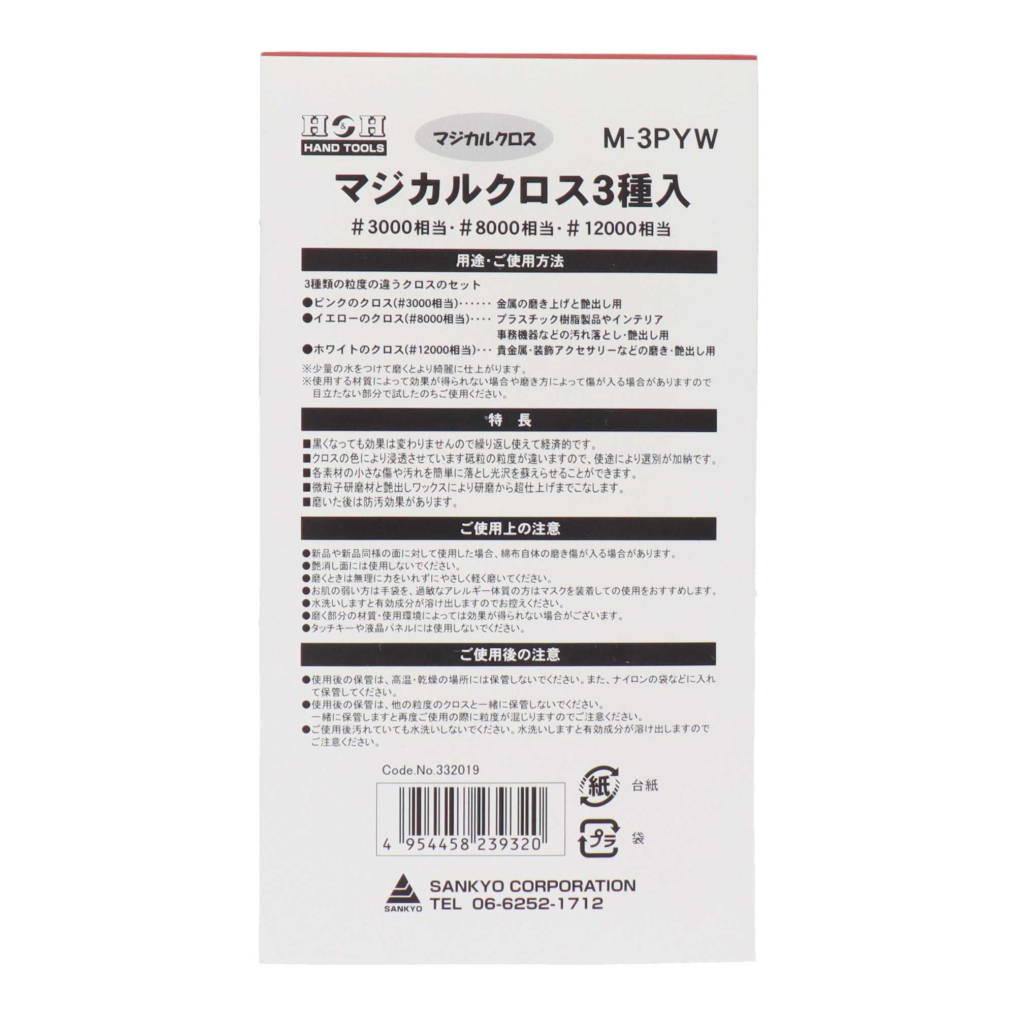 ●ピンクのクロス(#3000相当):金属の磨き上げと艶出し用