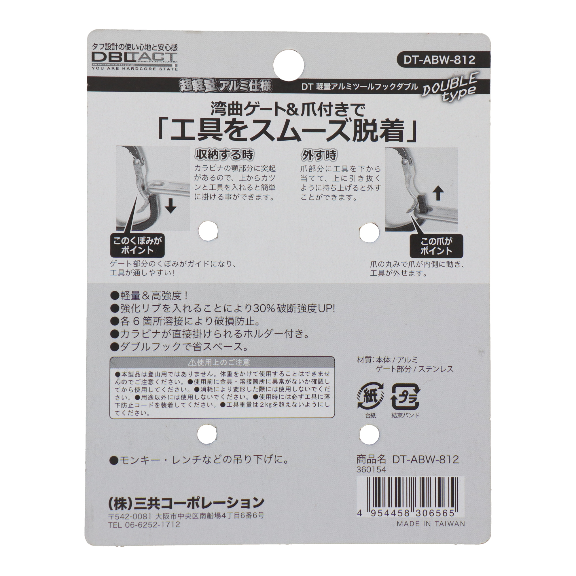 DBLTACTDT-ABW-812G 軽量アルミツールフックダブル<湾曲ゲート×爪付き> ガンメタ