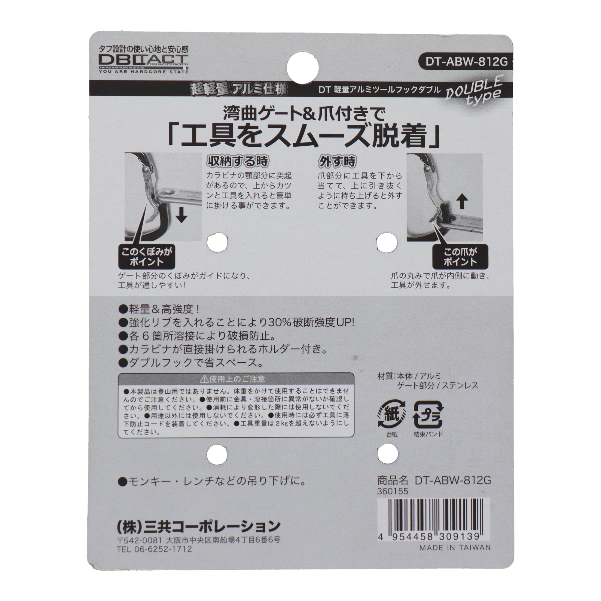 DBLTACTDT-ABW-812 軽量アルミツールフックダブル<湾曲ゲート×爪付き> シルバー