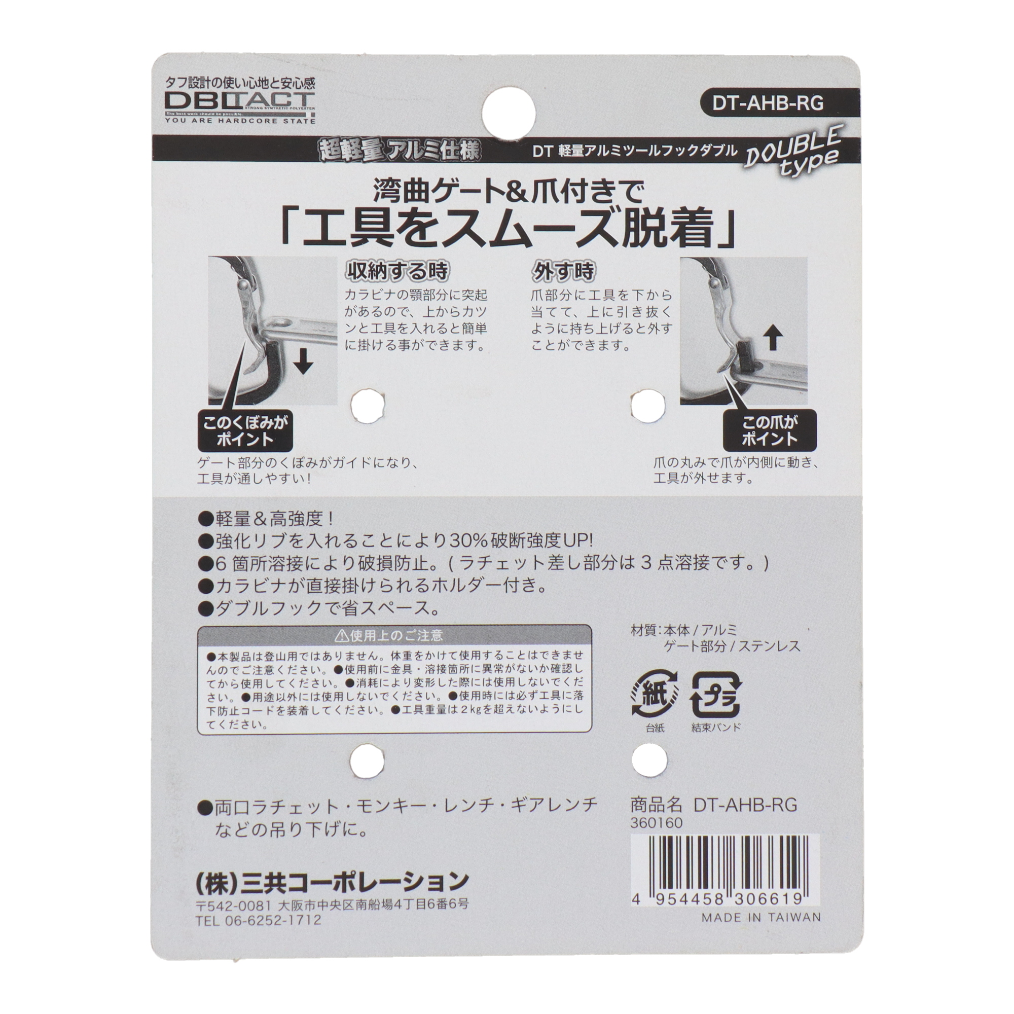 DBLTACTDT-AHB-811G 軽量アルミツールフック<湾曲ゲート×爪付き> ガンメタ