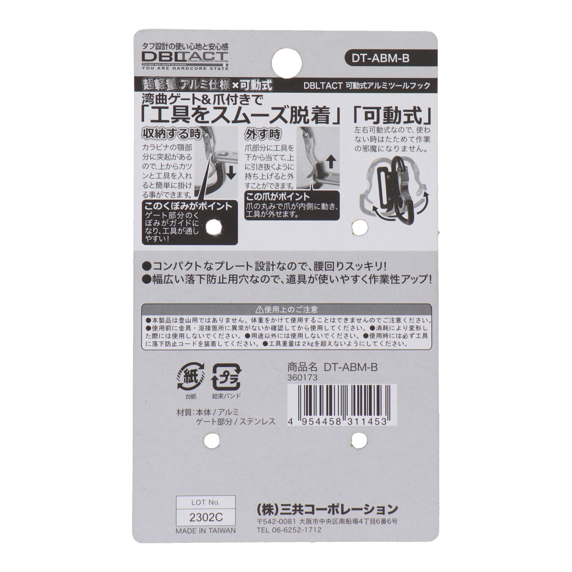 DBLTACTDT-AJM-B 軽量可動式アルミツールフック マットブラック