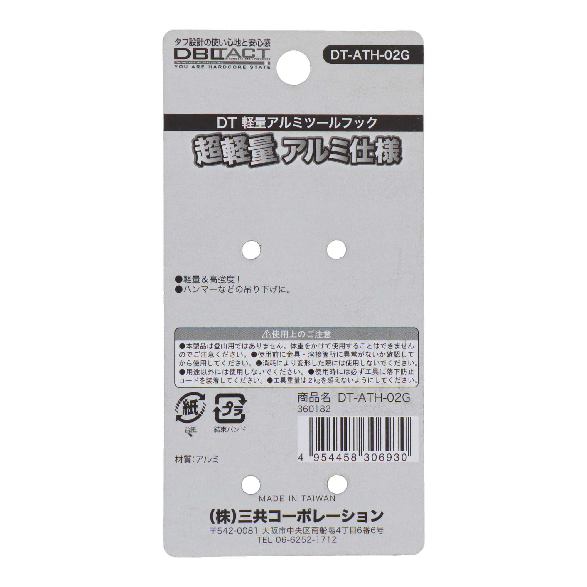 DBLTACTDT-ATH-06G 軽量アルミツールフック ガンメタ