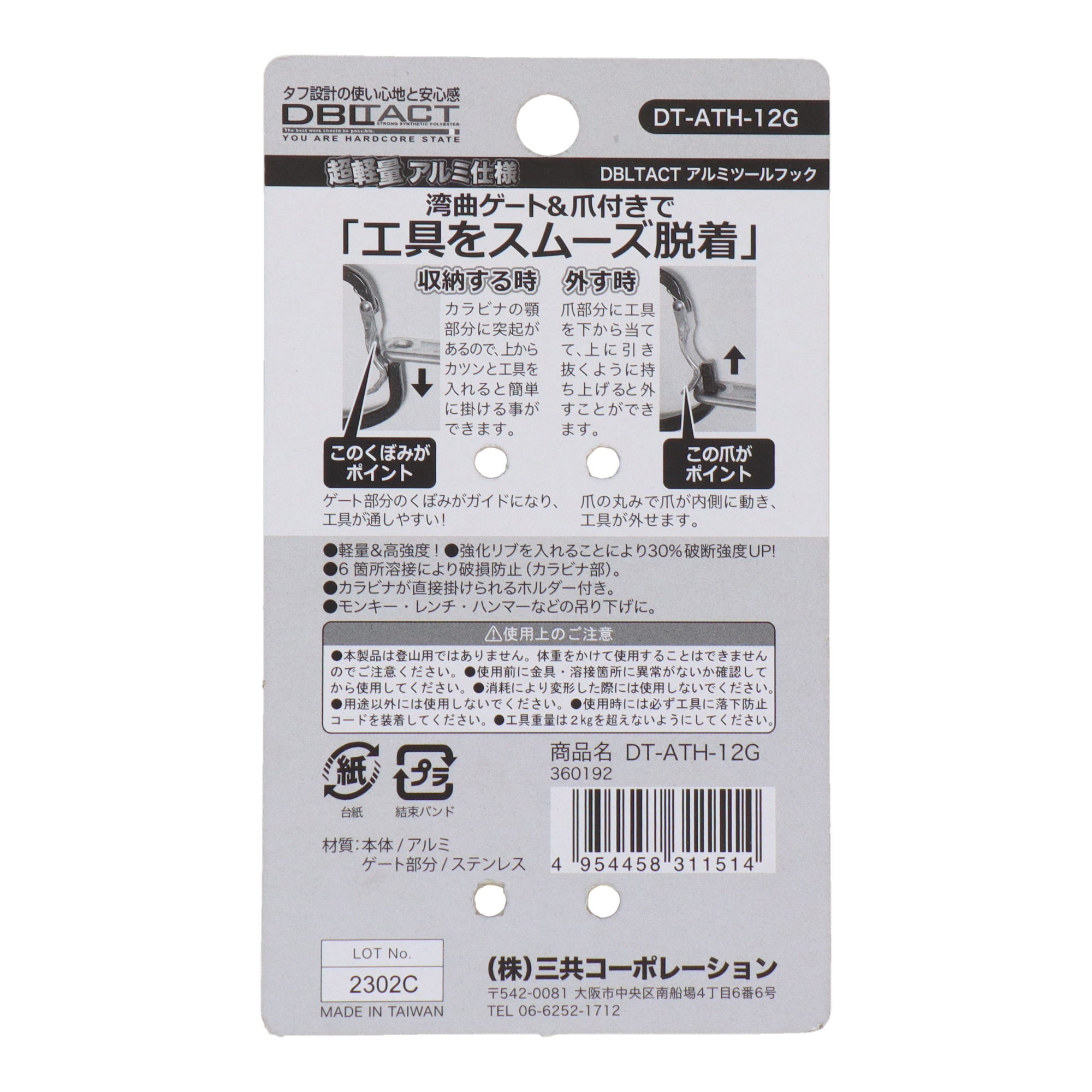 DBLTACTDT-ATH-13G 軽量アルミツールフック 湾曲ゲート×爪付き ガンメタ