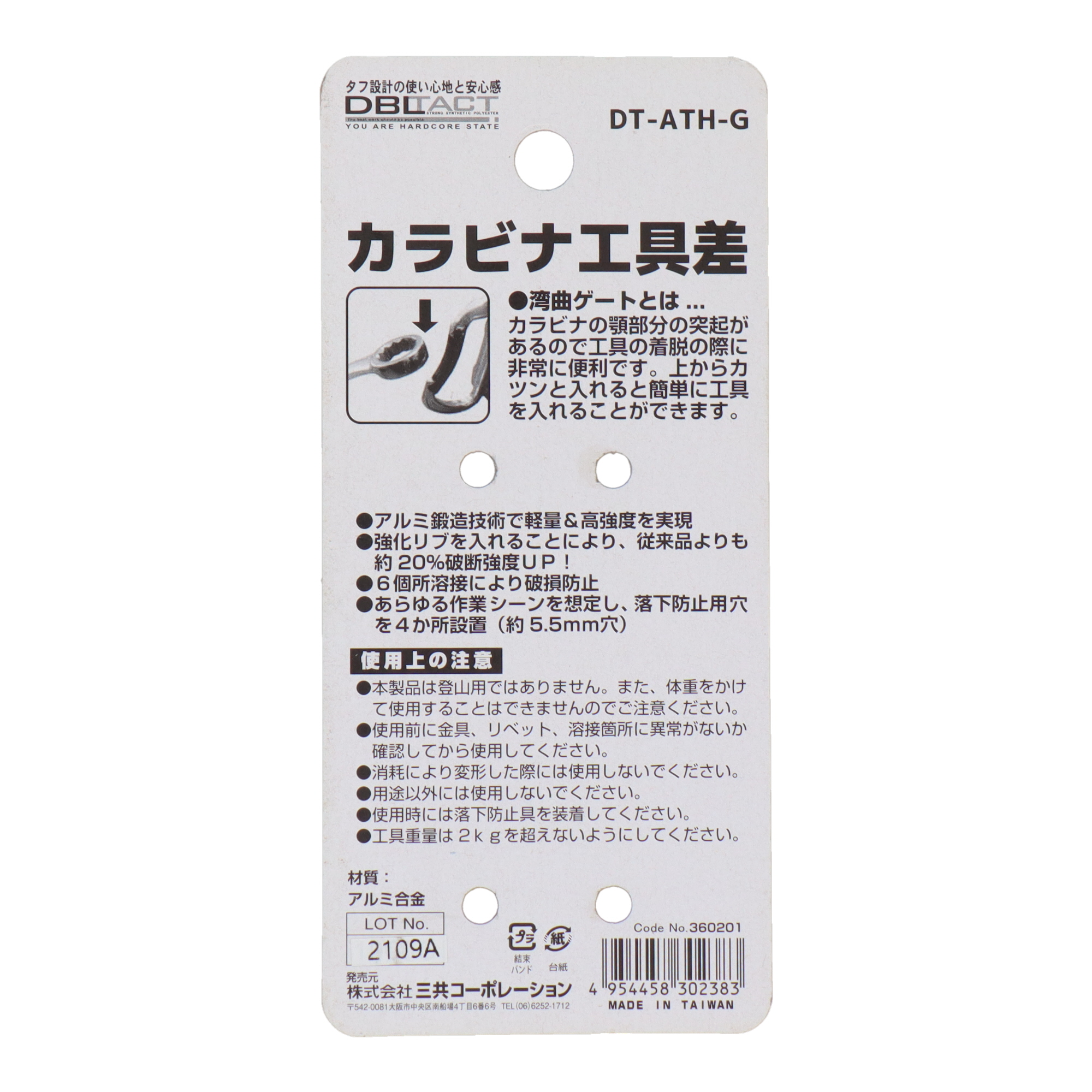 DBLTACTDT-ATH-S カラビナ工具差 <湾曲ゲート> 高強度アルミ鍛造品 シルバー