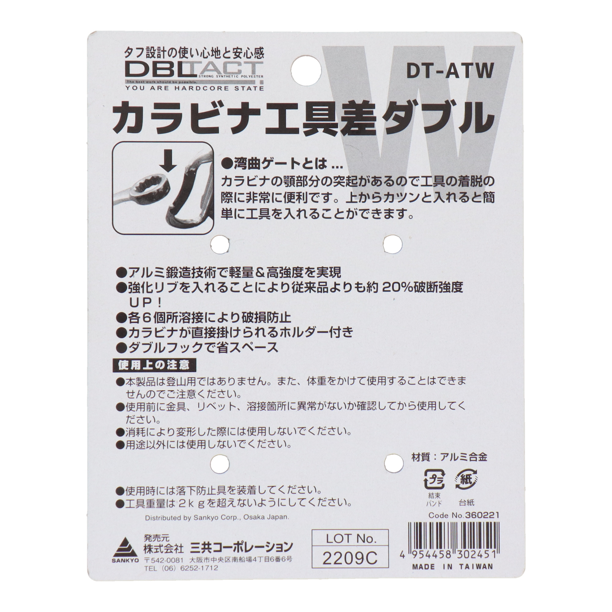 DBLTACTDT-AWD-S 【取扱終了】カラビナ工具差ダブル <湾曲ゲート> 小×大 高強度アルミ鍛造品 シルバー