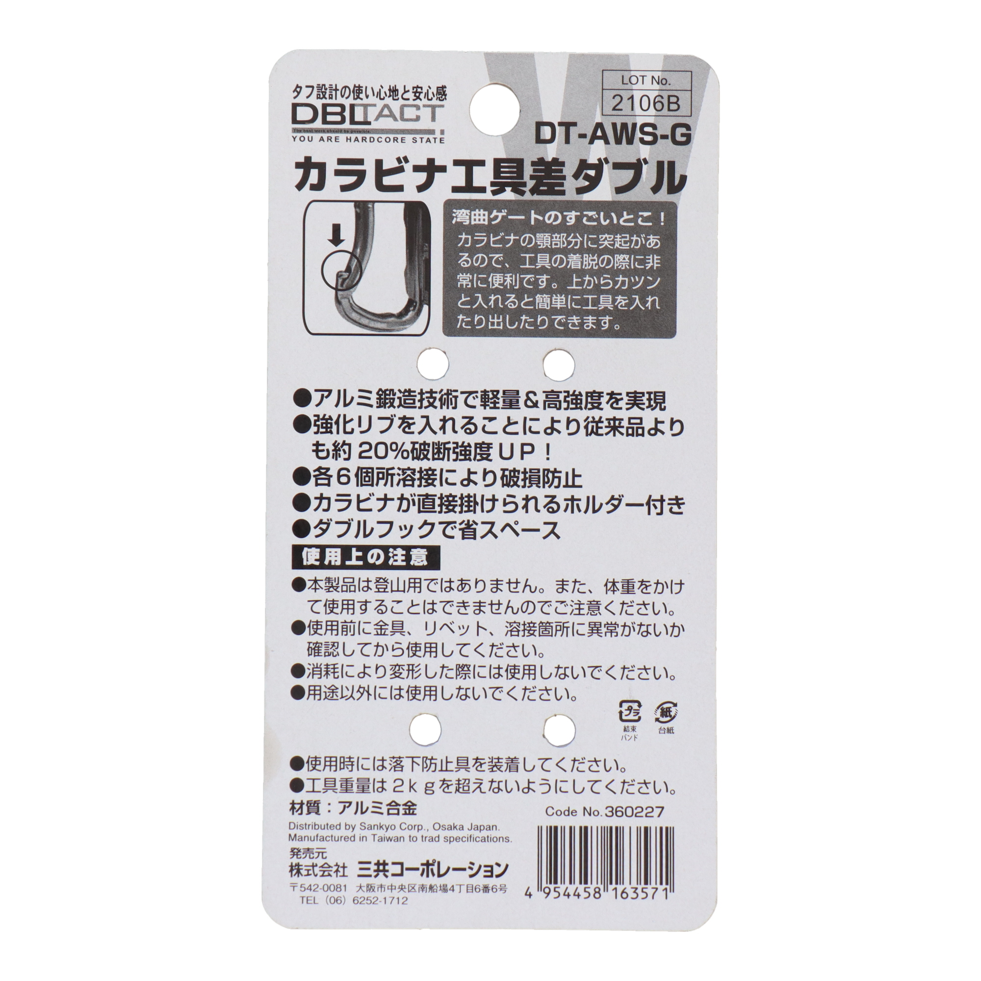 DBLTACTDT-AWD-S 【取扱終了】カラビナ工具差ダブル <湾曲ゲート> 小×大 高強度アルミ鍛造品 シルバー
