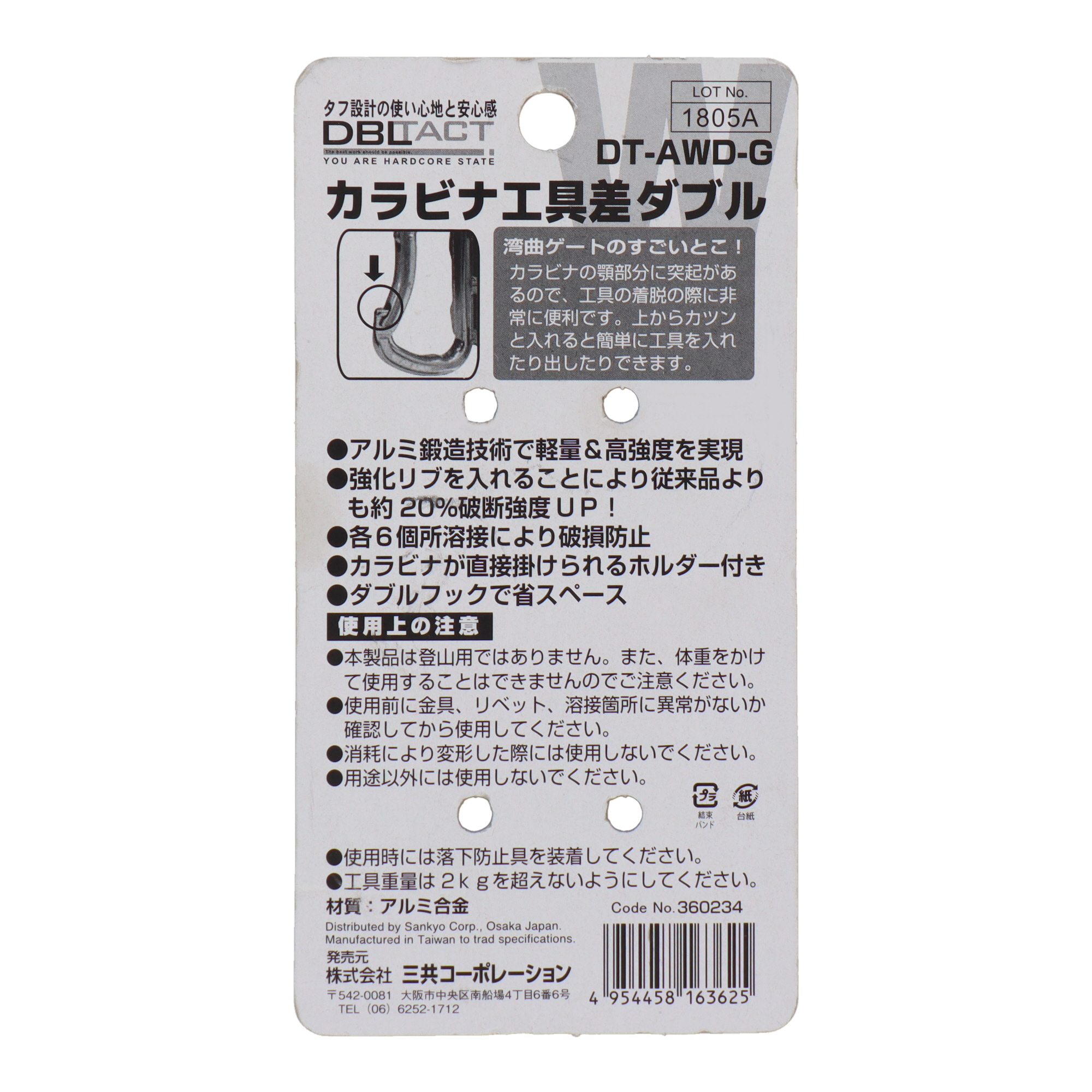 DBLTACTDT-AWS-G カラビナ工具差ダブル <湾曲ゲート> 小×小 高強度アルミ鍛造品 ガンメタ