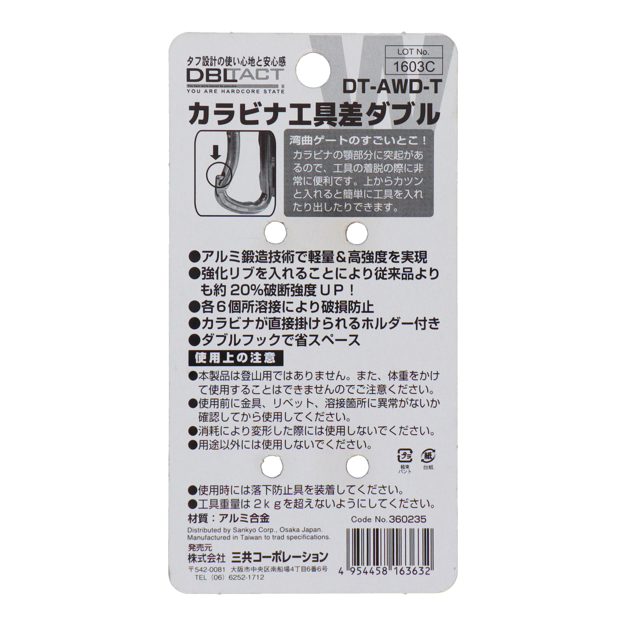 DBLTACTDT-ATH-T カラビナ工具差 <湾曲ゲート> 高強度アルミ鍛造品 チタン