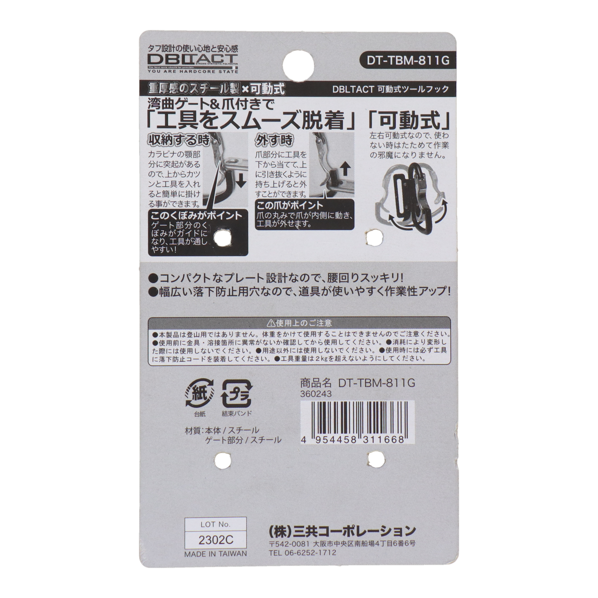 DBLTACTDT-AJM-G 軽量可動式アルミツールフック ガンメタ