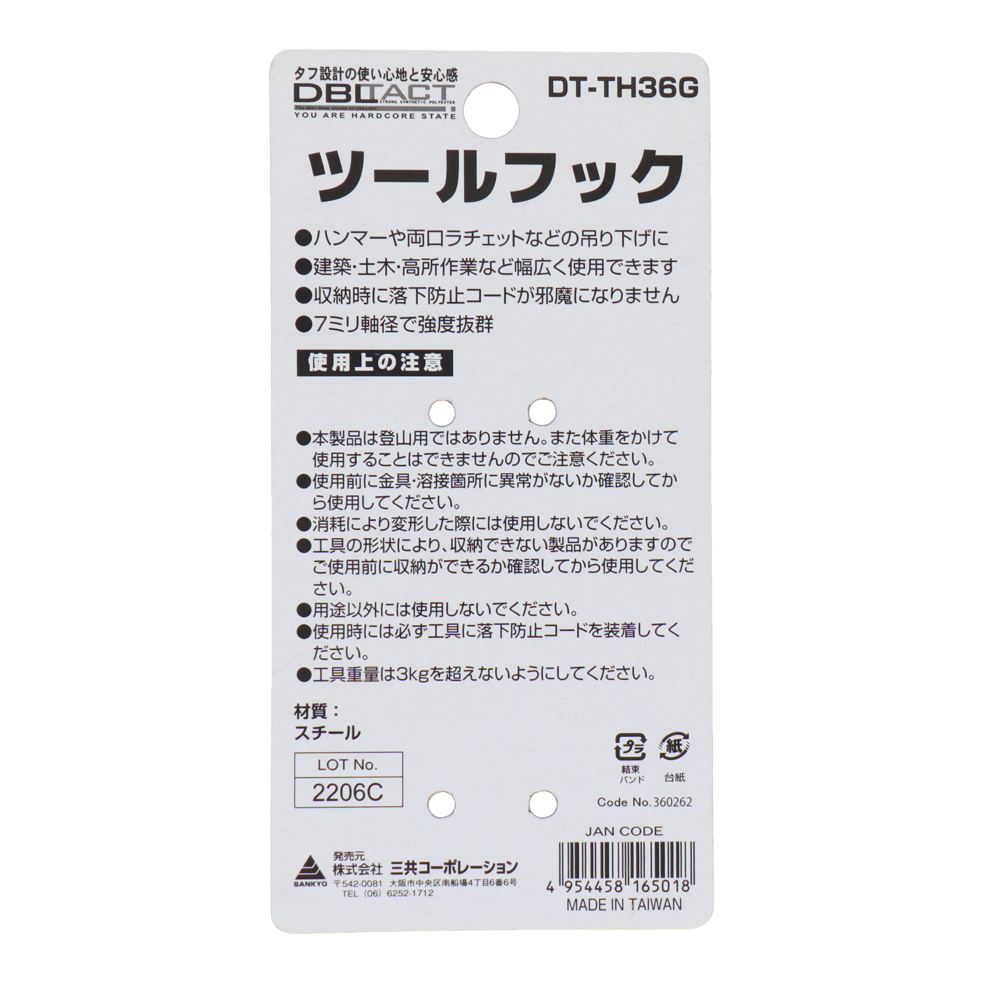 ●建築・土木・高所作業など幅広く使用できます。 ●収納時に落下防止コードが邪魔になりません。 ●落下防止用フック取付口 ●ベルト幅60mm対応