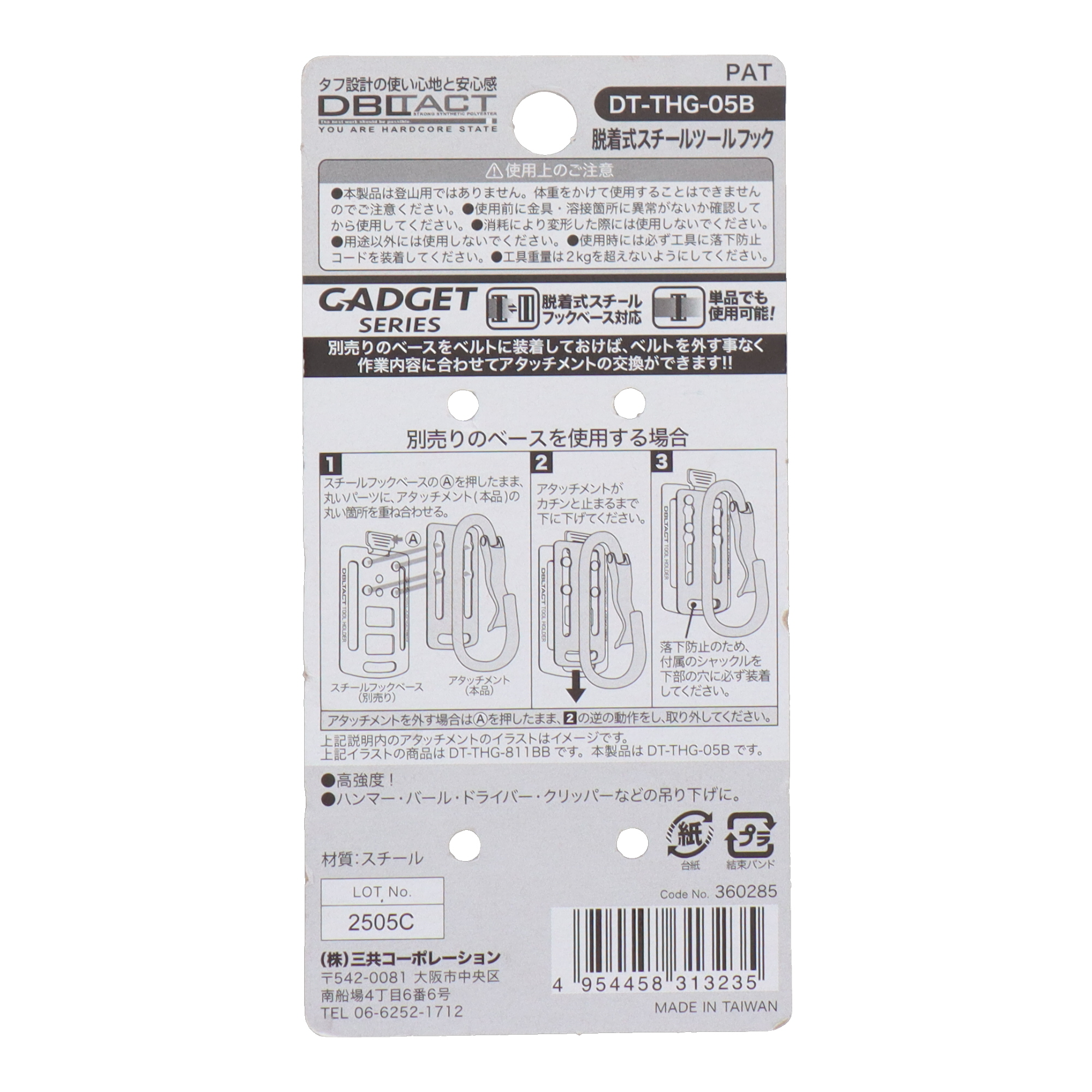 DBLTACTDT-THG-03B GADGET SERIES 脱着式スチールツールフック