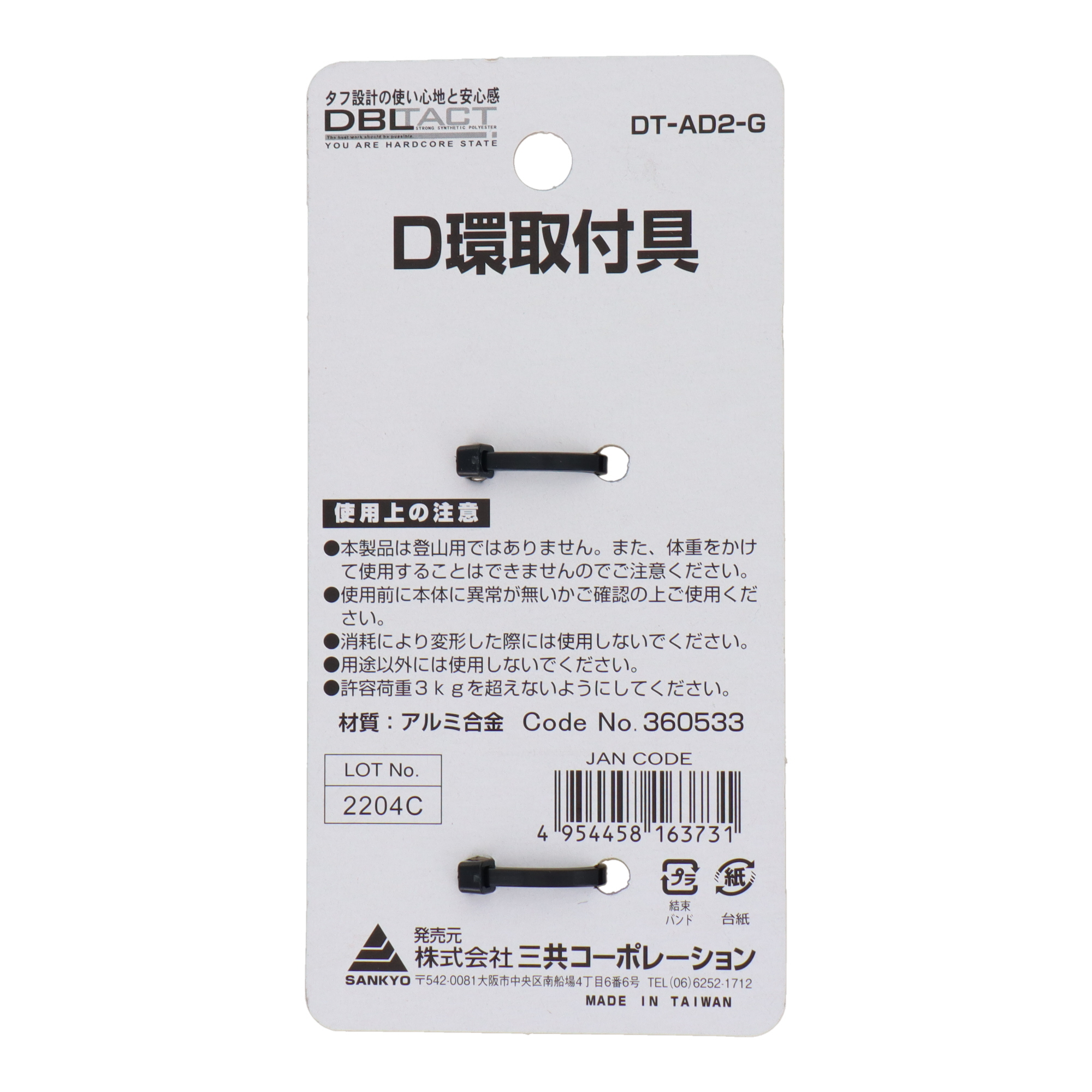 DBLTACT D環取付具 2ツ穴 ガンメタ