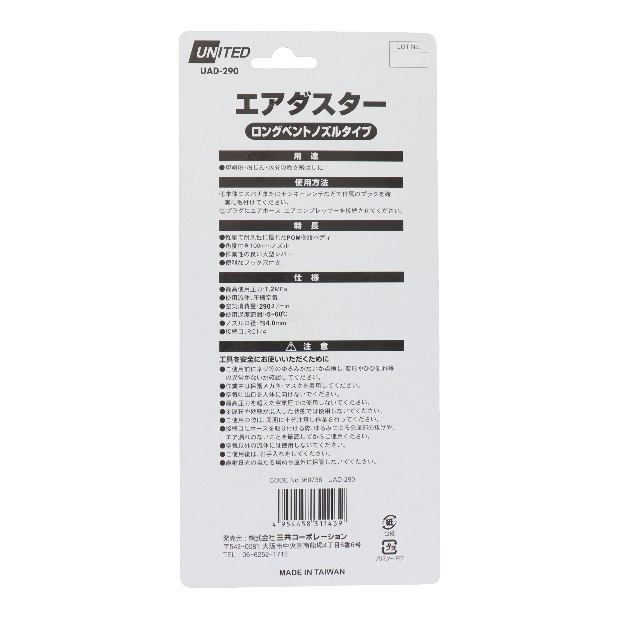 ●空気消費量:290L/min