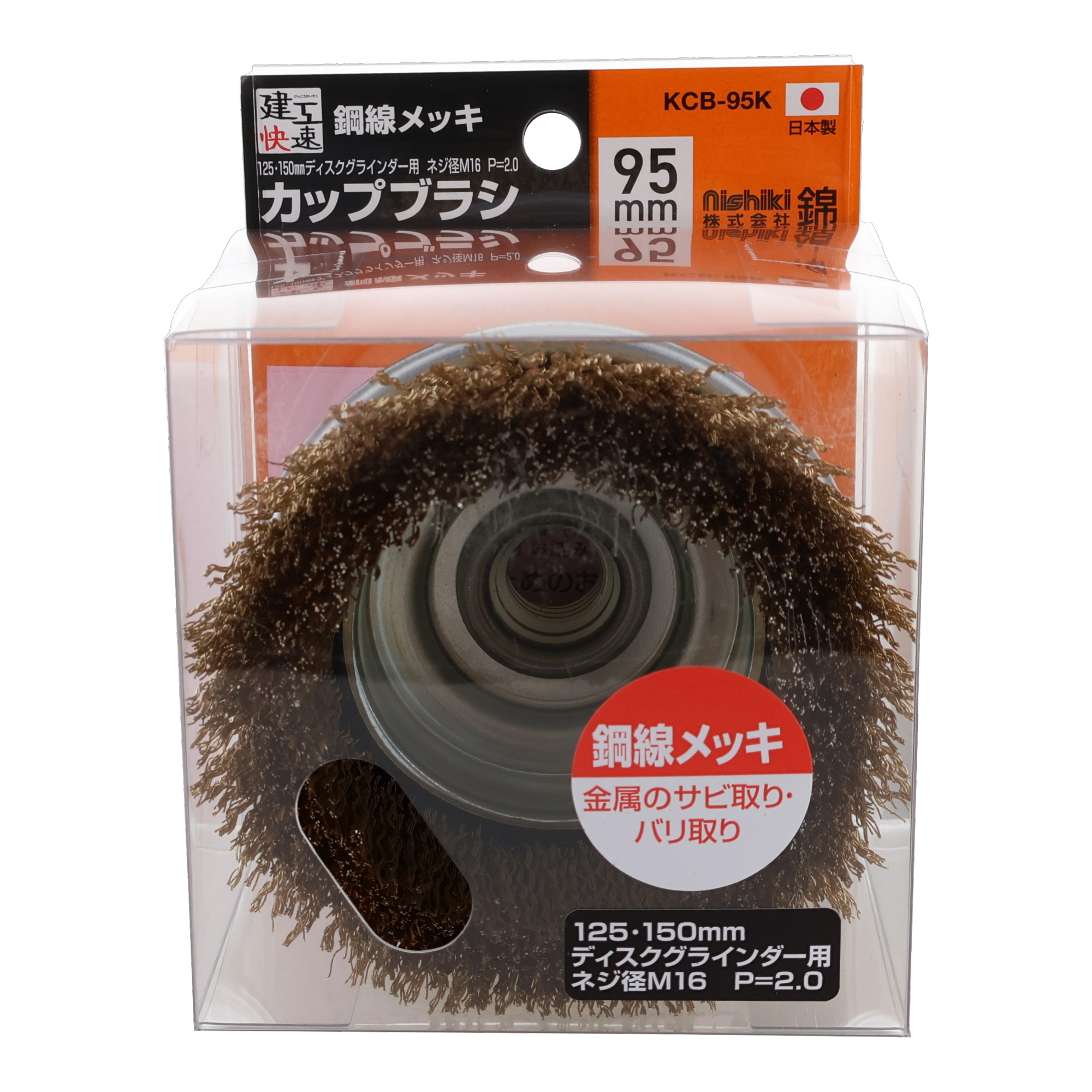 建工快速 カップブラシ 鋼線メッキ 95mm(125mm・150mmディスクグラインダー用)
