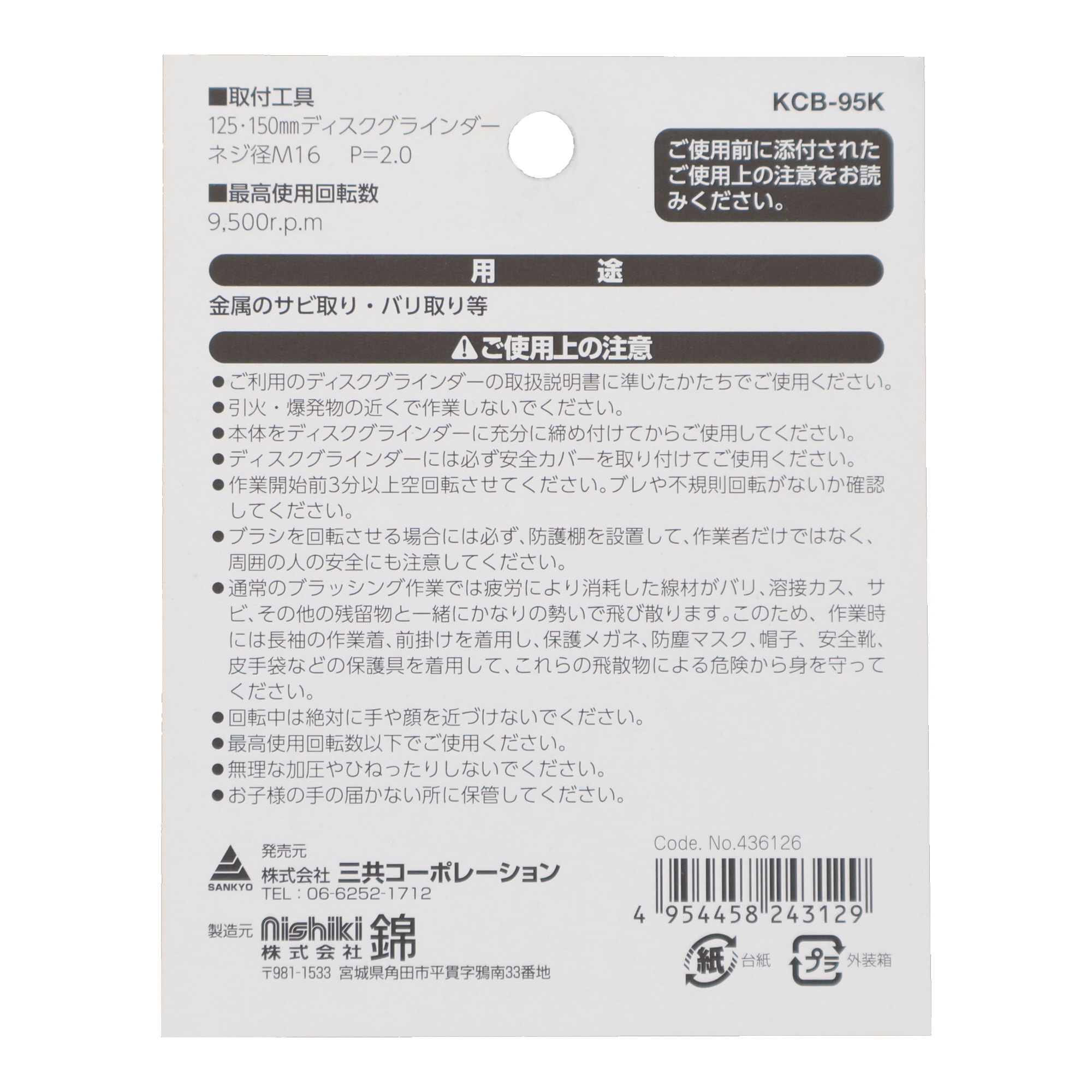 ●最高使用回転数:9,500rpm