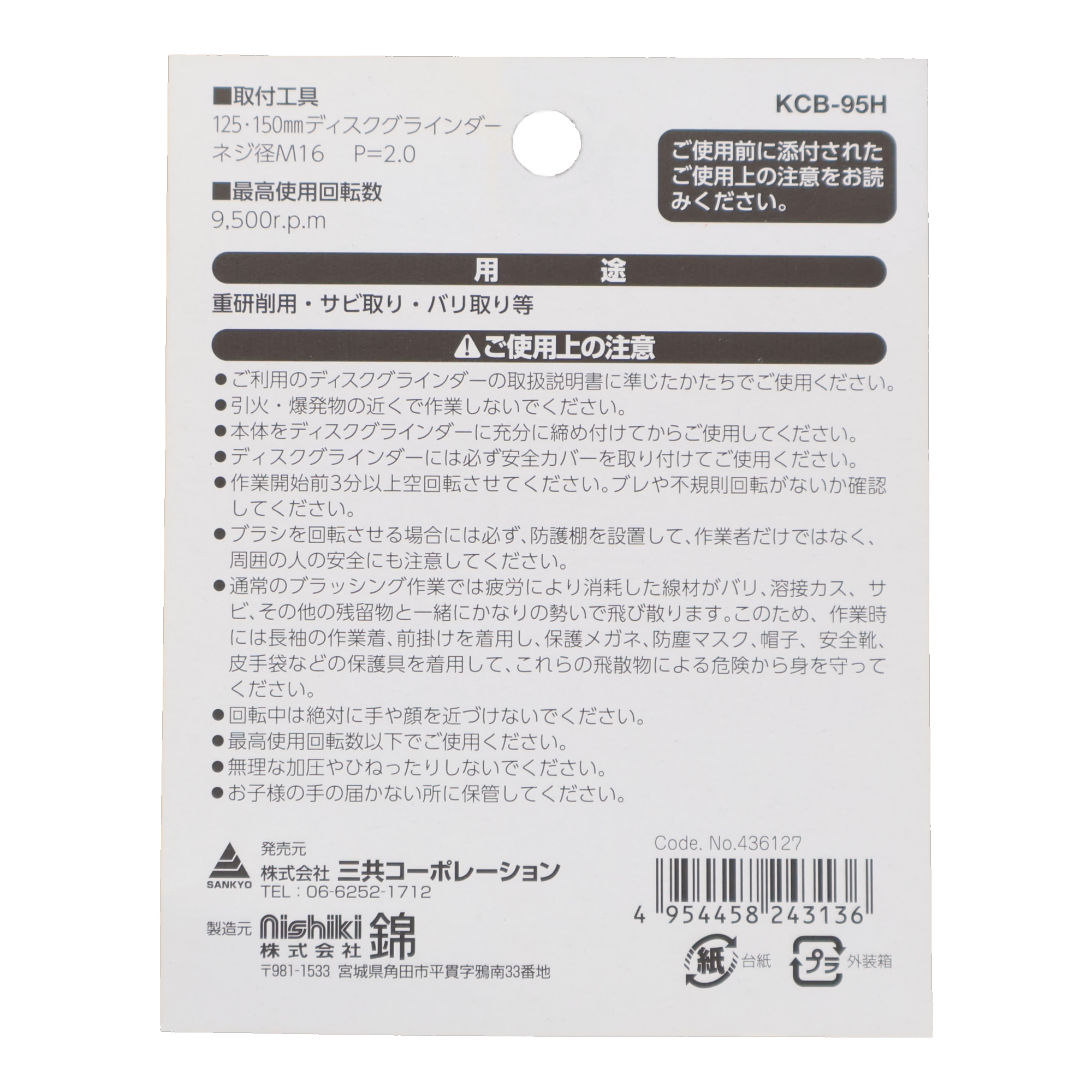 ●最高使用回転数:9,500rpm