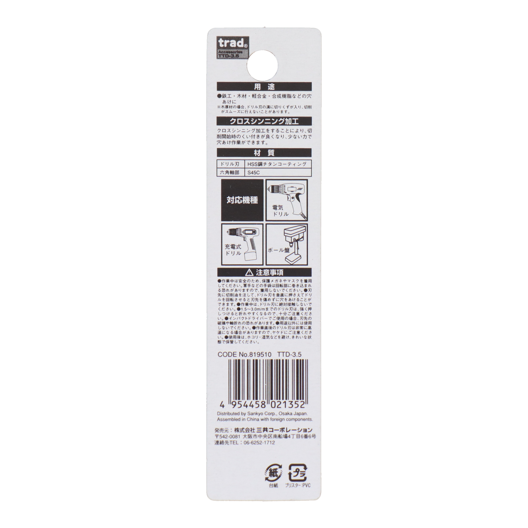 trad 六角軸ショートチタンドリル 3.5mm TTD-3.5