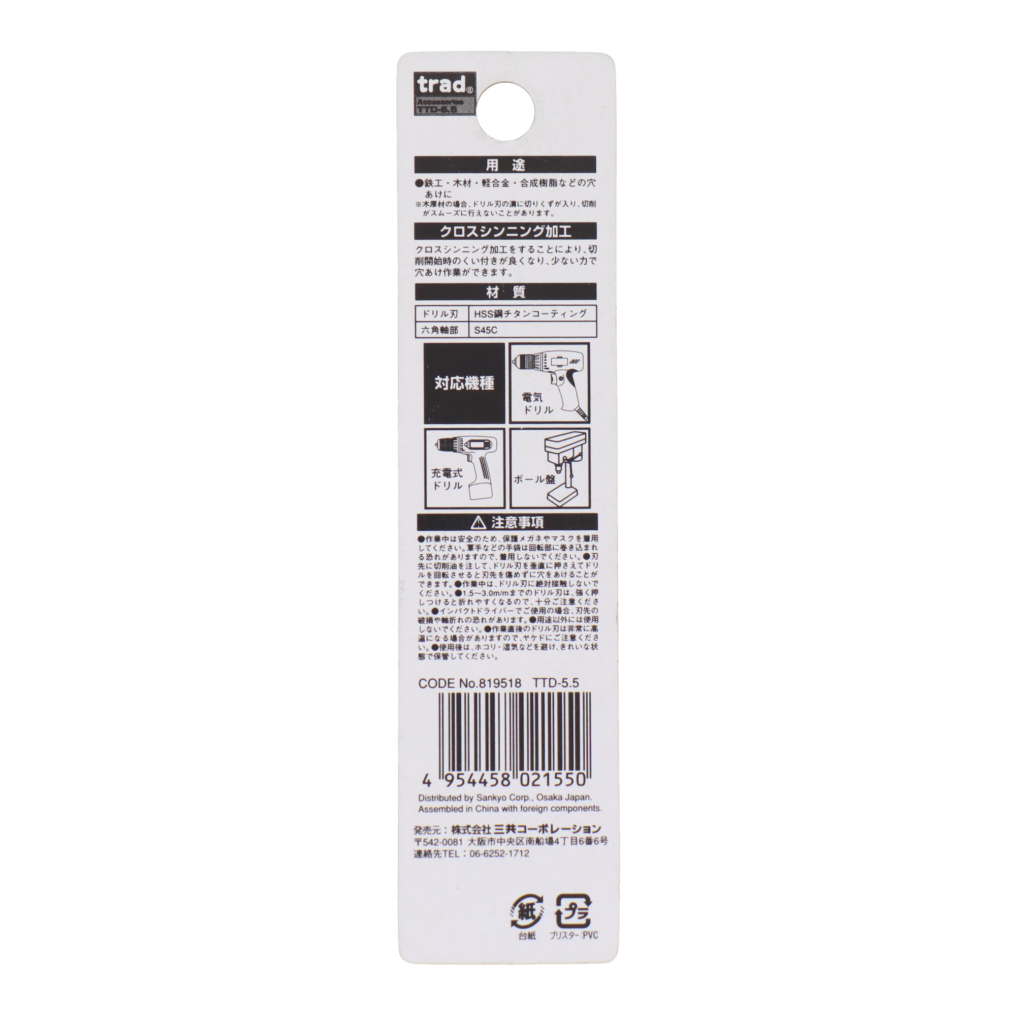 trad 六角軸ショートチタンドリル 5.5mm TTD-5.5
